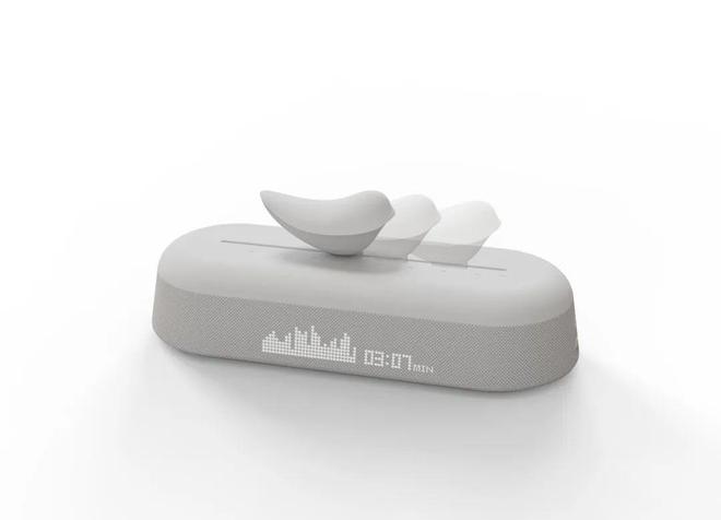 Follow音响将传统播放器的按键集中在小鸟本身,在用户下意识触摸时完成一系列需求。用户触摸小鸟的头部和尾部,完成歌曲切换功能;触摸中背一次,收集音乐,背面变红,音乐视为收藏;连续触摸背面两次暂停和开始音乐。每次切换歌曲时,小鸟会自动回到原来的位置,并随着歌曲进度再次移动。